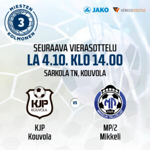Ennakko: KJP – MP/2 La 4.10. klo 14:00, Sarkola TN, Kouvola MP/2 matkustaa kauden viimeisessä Kaakon Kolmosen ottelussaan lauantaina …