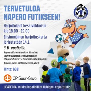 Mikkelin Palloilijoiden suosittu HIPPO-Naperofutis starttaa jälleen tammikuussa 2026 ja ilmoittautuminen on nyt avoinna! Tule mukaan liikkumaan, leikkimään ja oppimaan jalkapallon …