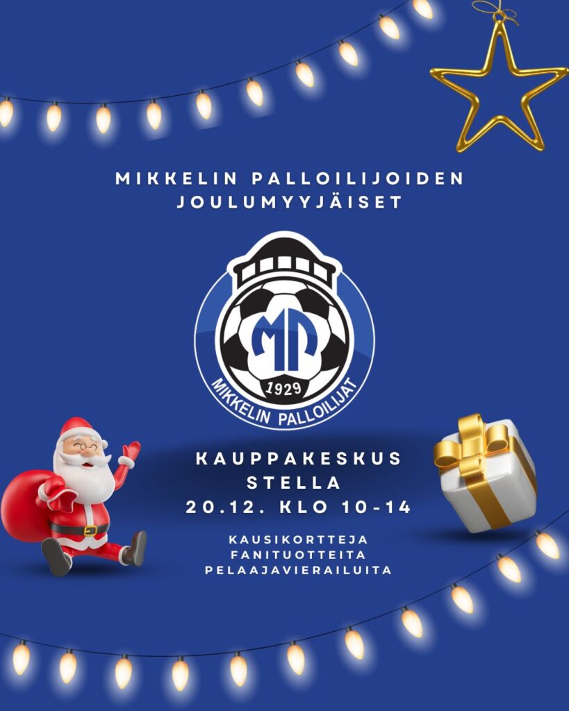 Lauantaina 20.12. klo 10-14 MP:n joulumyyjäiset Stellan Tähtitorilla. Käy ostamassa kausikortti tai fanituotteita! (Kausikorttikampanja voimassa 20.12. asti: kausikortit 49 € (norm. 99 €)) Voit käydä noutamassa myös verkkokaupasta ostamasi kausikortin!