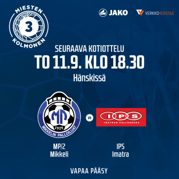MP/2 karkasi ottelussa reilun puolen tunnin pelin jälkeen jo kahden maalin johtoon, kun Adam Mami purjehti ensin yksin läpi maalivahti Timi Heikkisen upeasta pitkästä avauksesta viimeistellen 0-1 maalin (VIDEO) ja vain kolme minuuttia edellisestä Aapo Kurki tälläsi pallon maalin vasempaan yläkulmaan Luka Krivetzin hankkimasta rangaistuspotkusta vieden vieraat jo 0-2 -johtoon (VIDEO).