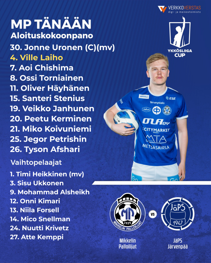 MP pelasi tänään Ykkösliigacupin kotiottelun JäPSiä vastaan. Molemmat joukkueet lähtivät otteluun kaksi tappiota alla. Vieraat siirtyivät nopeasti johtoon, mutta MP nousi loppuhetkillä tasoihin ja ottelu päättyi lopulta lukemiin 1–1(0–1).