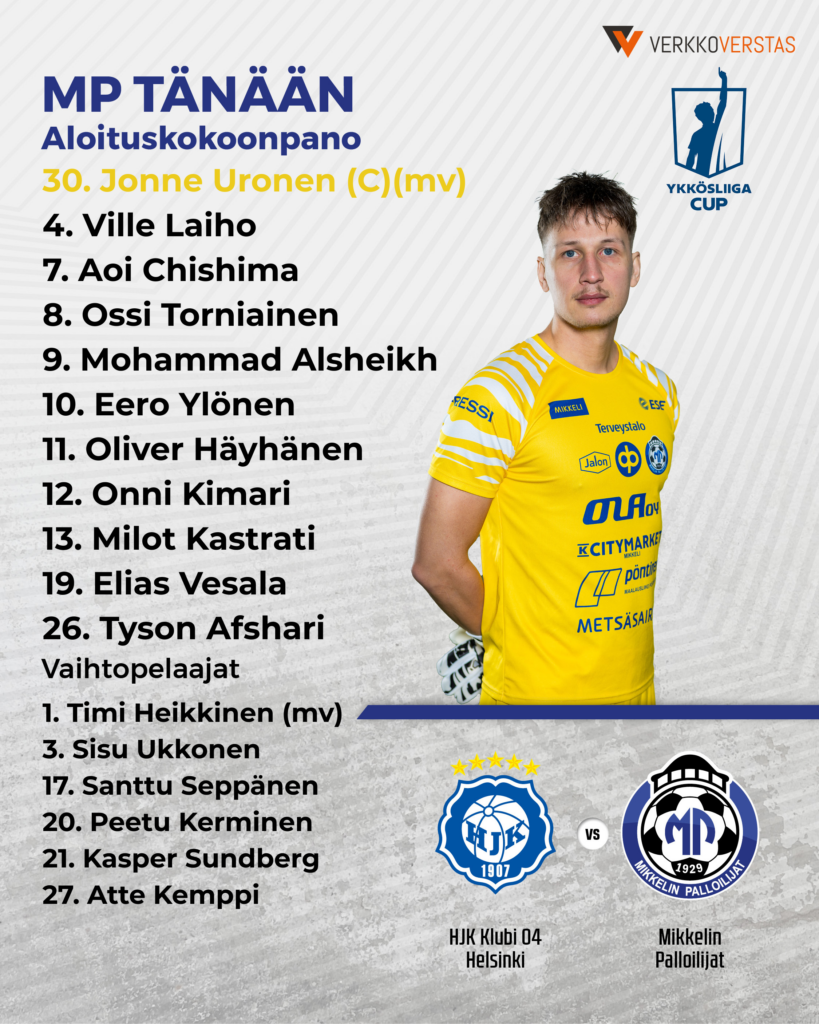Ykkösliigacupia MP jatkaa kahden viikon päästä lauantaina (la 14.2. klo 17.30), kun Jippo saapuu vastustajaksi Jalkapallohalliin. Sitä ennen on ohjelmassa ensi viikon lauantaina klo 17.15 pelattava harjoitusottelu Kakkosen MyPa:a vastaan.