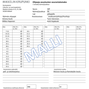Huomioittehan, että kohta ”Seuran vastuuhenkilön varmistus/nimenselvennys” tulee jättää tyhjäksi. Seurantalomakkeisiin ei tarvita ohjaajien allekirjoituksia, riittää että seuran avustushakemuksista vastaava henkilö allekirjoittaa.