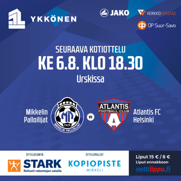 MP pelasi tiukan kolmen pelin viikon ja tulos oli täydellinen 9/9 pistettä ja maalejakin tuli peleihin mukavasti 12. KuPS Akatemia ottelussa hattutempun tehnyt Torfiq Ali-Abubakar otti pelissä jo kauden kahdeksannen keltaisen kortin ja on Atlantis -pelissä pelikiellossa. Torfiqin maalimäärä nousi jo kymmeneen. Mustapha Coker onnistui myös maalinteossa Kuopiossa. Coker on onnistunut tällä kaudella yhdeksän kertaa. Näillä näkymin Torfiqin lisäksi ei muita poissaoloja ole, joten Atlantis saa varmasti tehdä täyden päivätyön, että saa katkaistua MP:n voittoputken.