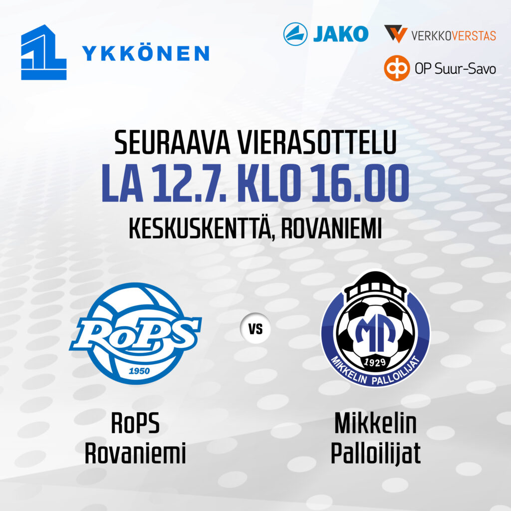 Kevätkierroksella RoPS kävi Mikkelin jalkapallohallissa ryöstämässä kaikki pisteet yhden kulmahässäkästä tulleen maalin turvin. Sen jälkeen on kuitenkin virrannut paljon vettä Ounasjoessa ja vierasjoukkue MP on kivunnut RoPS:n edelle sarjataulukossa. RoPS majailee tällä hetkellä sarjataulukossa sijalla 10 ja MP muutamaa pykälää korkeammalla.